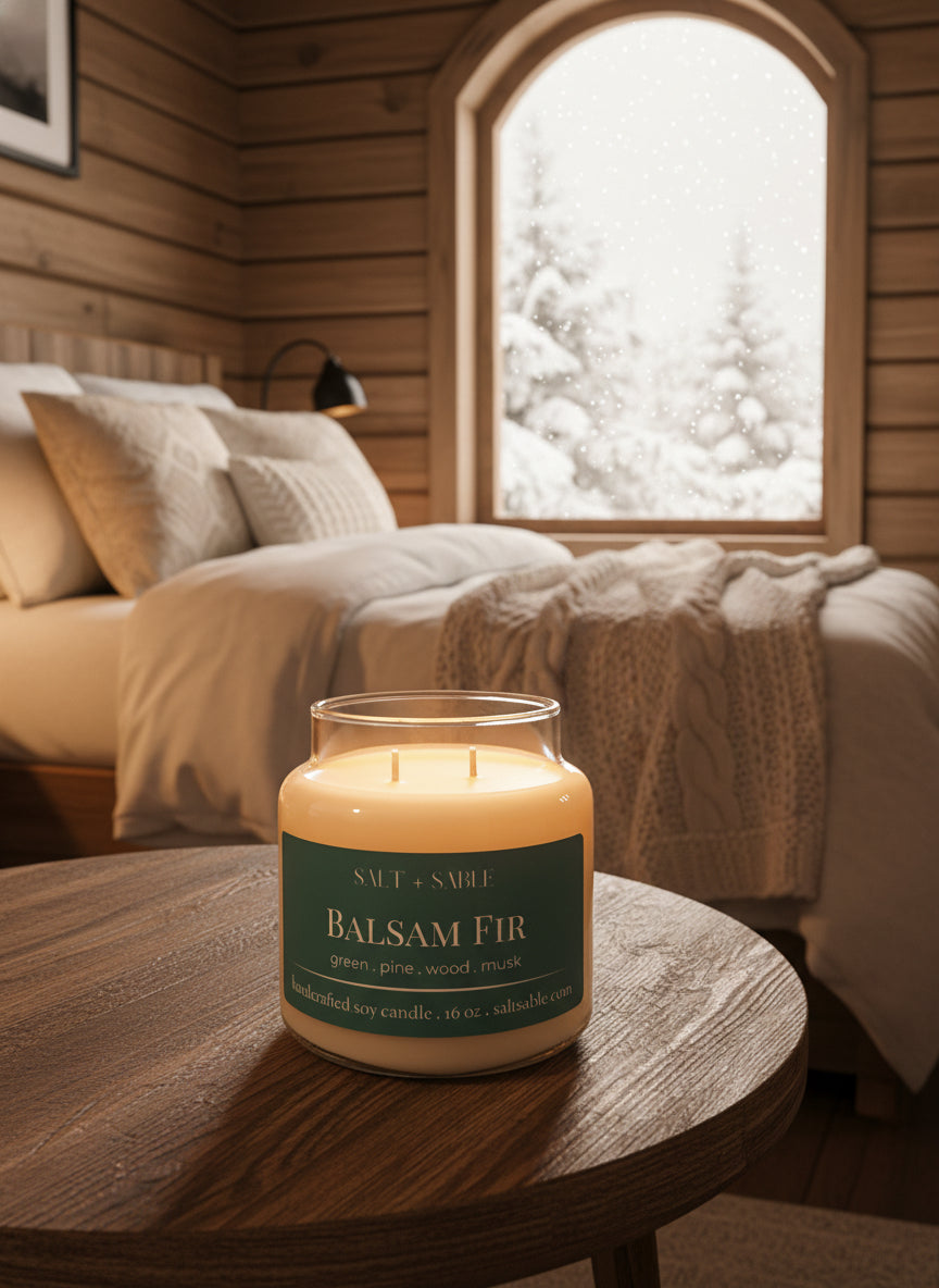 Indulge in the refined aromatics of this Balsam Fir soy candle, expertly crafted to evoke the tranquility of evergreen forests. The composition opens with invigorating green and pine accords, grounded by earthy wood notes and finished with a whisper of musk for depth and longevity. Made from sustainable soy wax, this apothecary candle offers a clean, even burn while infusing your space with a sophisticated, nature-inspired fragrance that lingers beautifully throughout the day.